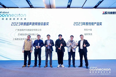 在線束世界頒獎及高端交流晚宴上,海明聲股份榮獲“2023年度超聲波焊接設備獎”,這份榮譽是對我們在超聲波線束焊接領域過去所付出的努力和取得成就的肯定。