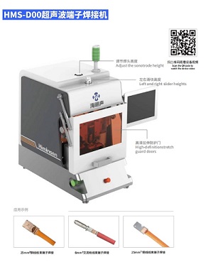 HMS-D00超聲波端子焊接機(jī)是臺(tái)式結(jié)構(gòu)的半自動(dòng)焊接機(jī),海明聲自主研發(fā)品牌換能器、發(fā)生器、變幅桿、焊頭等使得整機(jī)性能大幅提升。設(shè)備功率4000W,焊接線束的平方:2.5—25mm2銅線/2.5—35mm2鋁線。