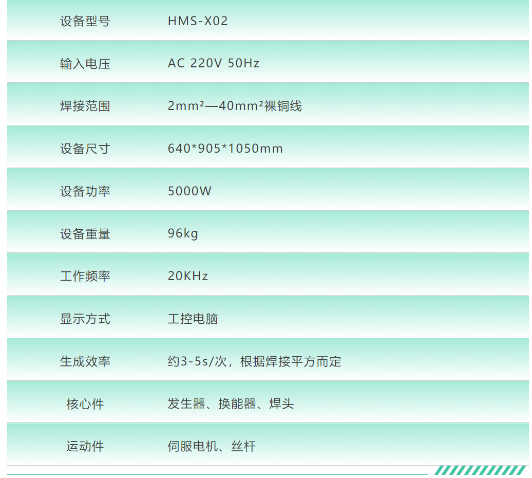 HMS-X02超聲波線束焊接機(jī)是伺服型焊接機(jī),整機(jī)輕量化的結(jié)構(gòu)設(shè)計(jì),精巧美觀,全伺服高精度的控制系統(tǒng),運(yùn)行穩(wěn)定,觸控顯示屏智能操作,維護(hù)成本低,能為企業(yè)提供高效低成本的焊接優(yōu)勢(shì)。它適用于2—40mm2裸銅線線束焊接,在汽車、儀器儀表、通訊設(shè)備、家用電器等多個(gè)領(lǐng)域中都被廣泛應(yīng)用。