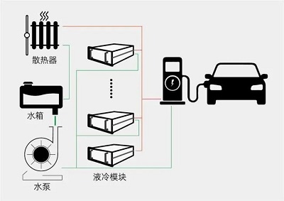 液冷超充,是在電纜和充電槍之間設(shè)置一個(gè)專(zhuān)門(mén)的液體循環(huán)通道,通道內(nèi)加入具備散熱功能的液冷卻液,通過(guò)動(dòng)力泵推動(dòng)冷卻液循環(huán),從而把充電過(guò)程中產(chǎn)生的熱量帶出來(lái),降低電纜溫度。由于系統(tǒng)功率部分采用液冷散熱,與外界環(huán)境無(wú)空氣交換,因此可以實(shí)現(xiàn)IP65的設(shè)計(jì),同時(shí)系統(tǒng)采用大風(fēng)量風(fēng)扇散熱,噪聲低,環(huán)境友好性高。相比傳統(tǒng)的空氣冷卻系統(tǒng),液冷系統(tǒng)的冷卻效果更好、充電速度更快、充電更加安全,大大提高了充電系統(tǒng)的工作效率和壽命。